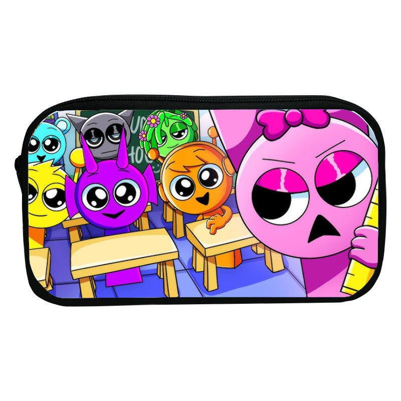 New Printed Sprunki Pencil Case Cartoon Rhythm Box Stationery Bag Primary School Students Storage Bag