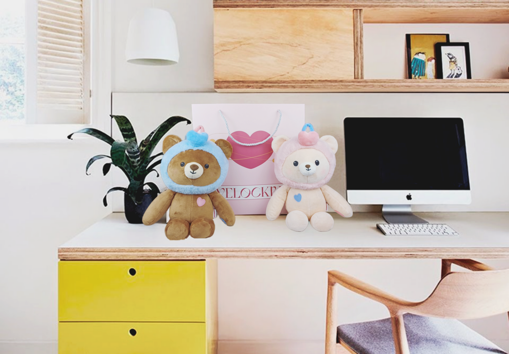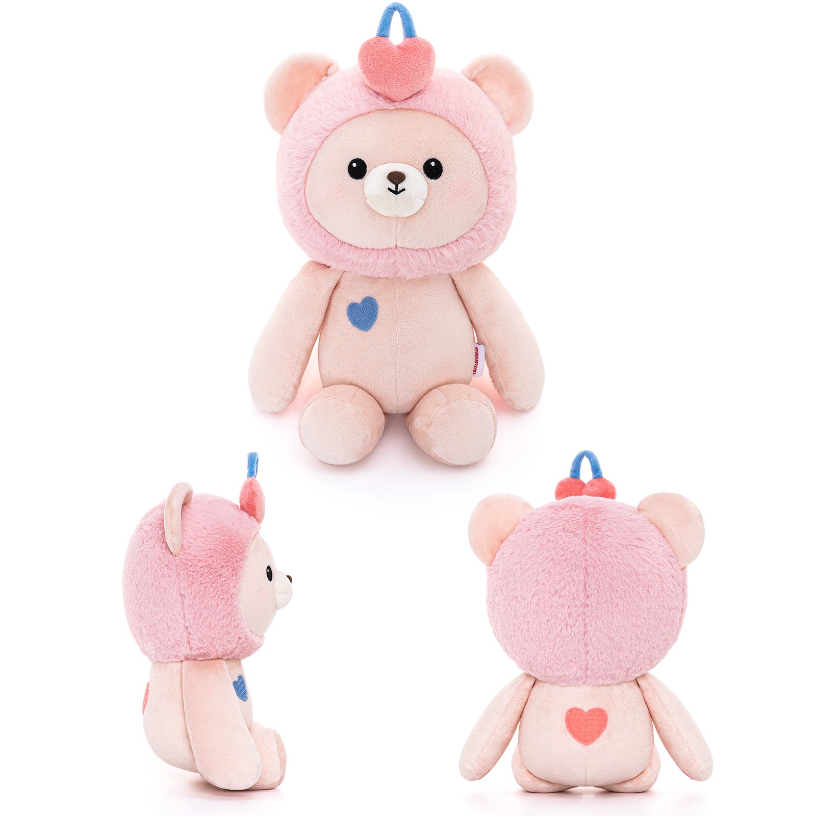 PORTABLE HEART SHAPED LOCKING CLASP: The bear toy height: 12.59 inches, weighs: 8.11 ounces; the head is designed with a heart shaped locking clip to show us love to pass on love; It is easy to hang on the bag with a clasp when traveling. It can be used as a gift, a child's schoolbag, a room or a car decoration.
