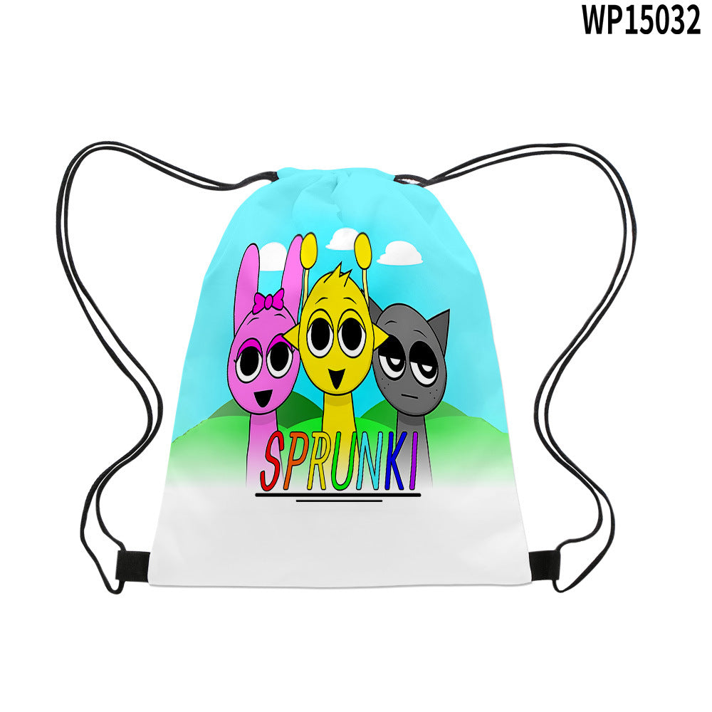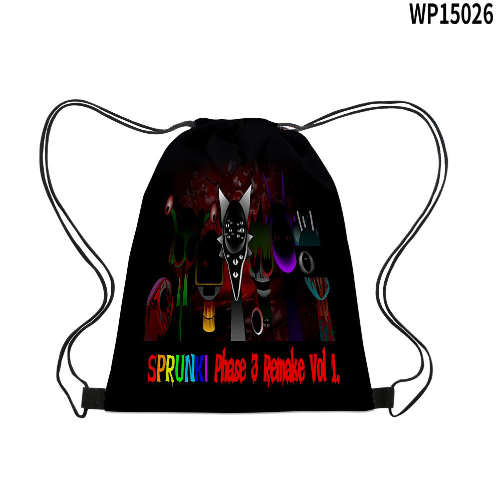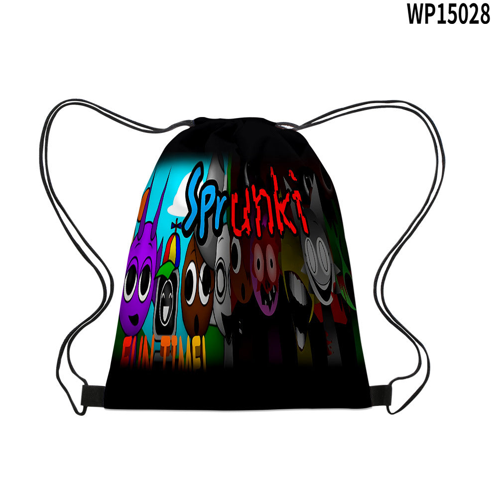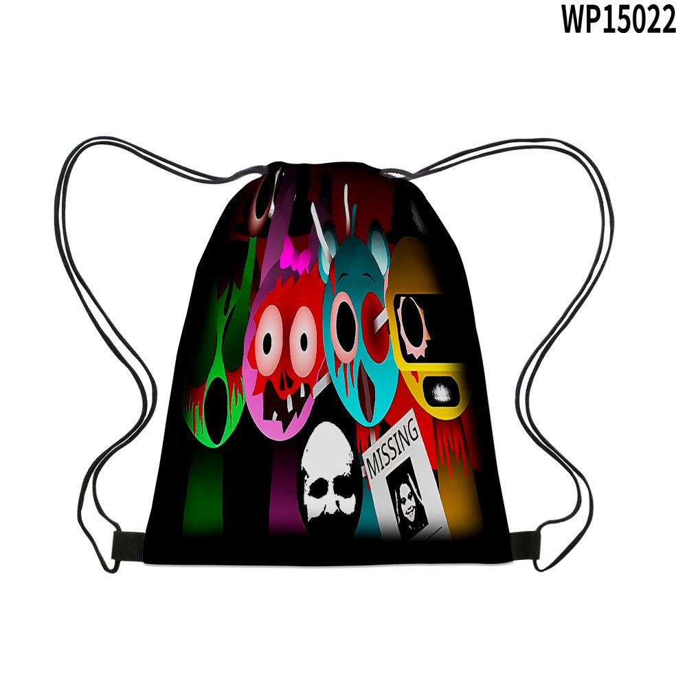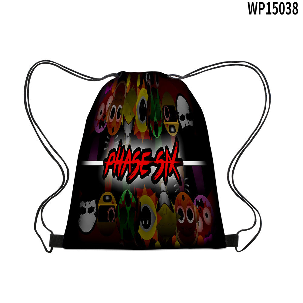 3D New Game Rhythm Box Sprunki Drawstring Bag Portable Large Capacity Drawstring School Bag Splash-proof