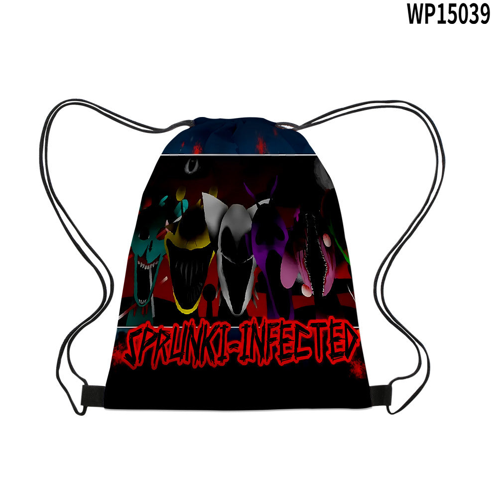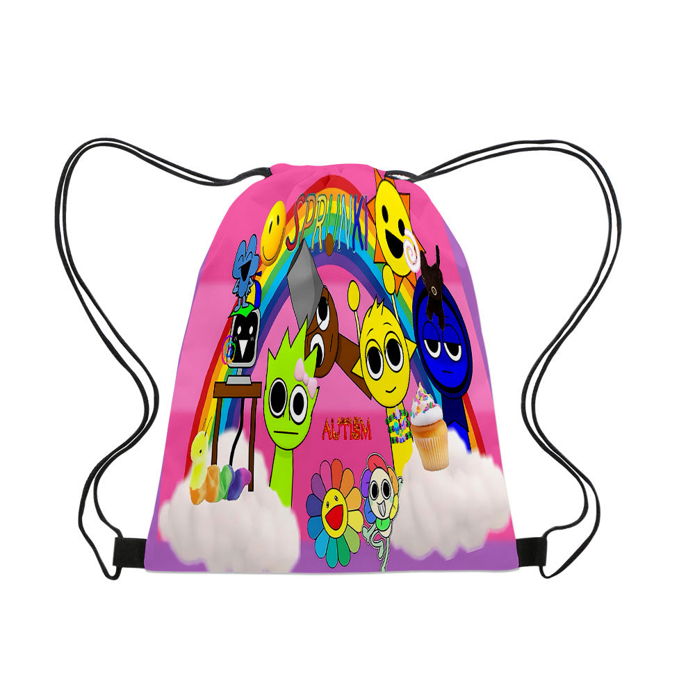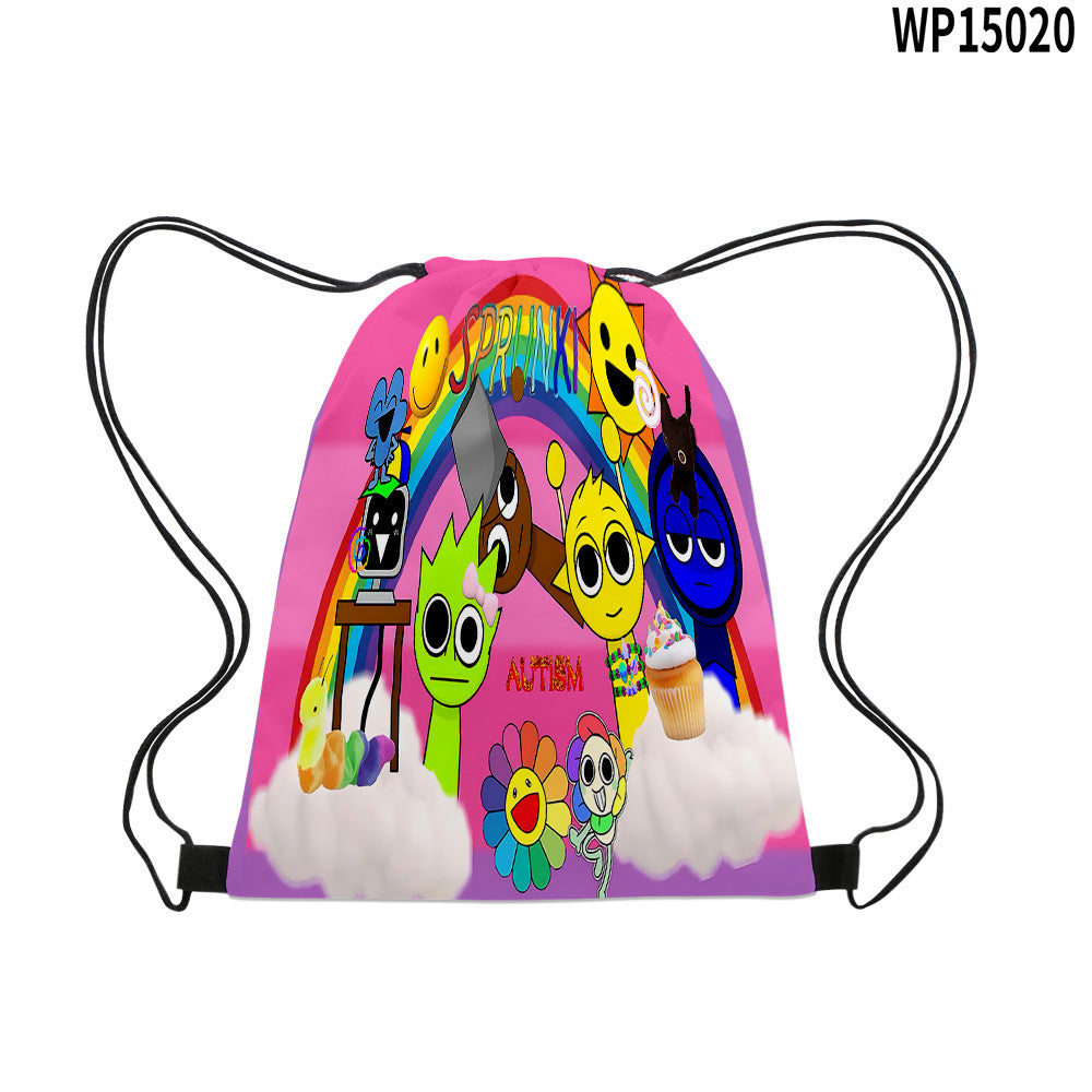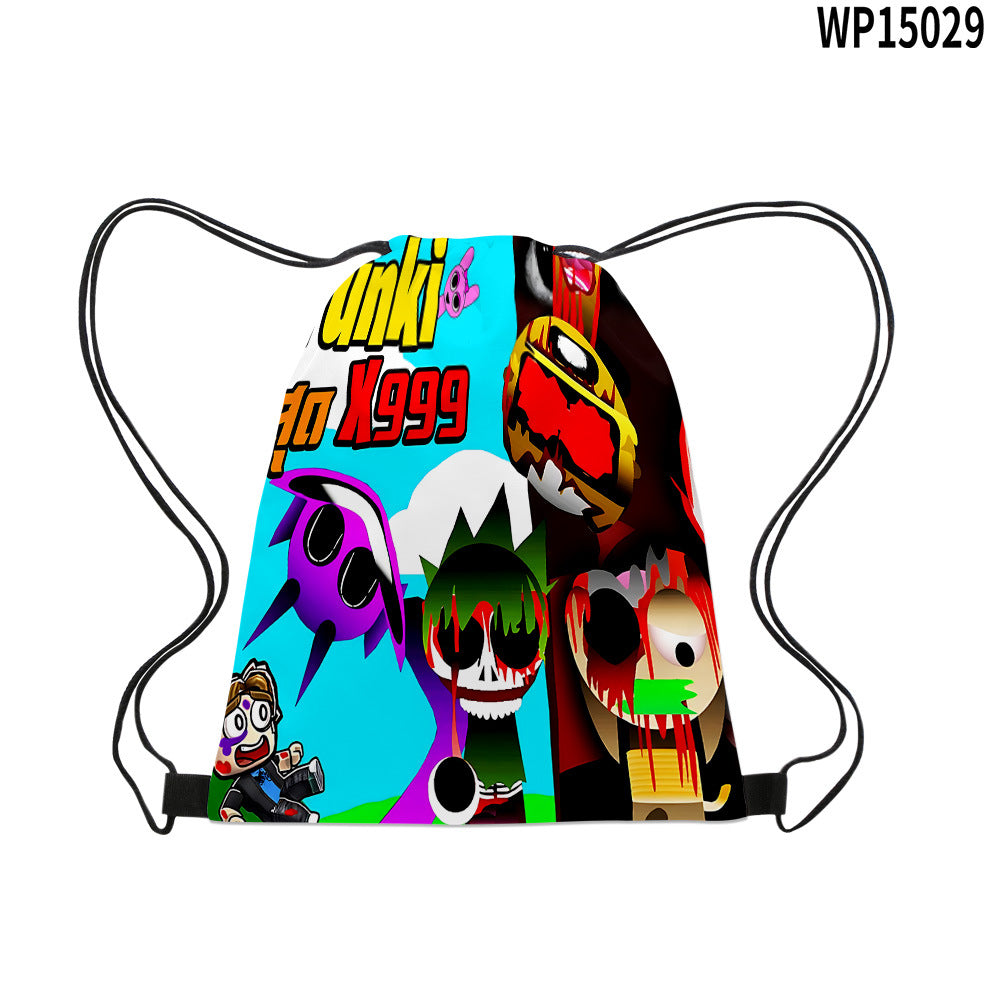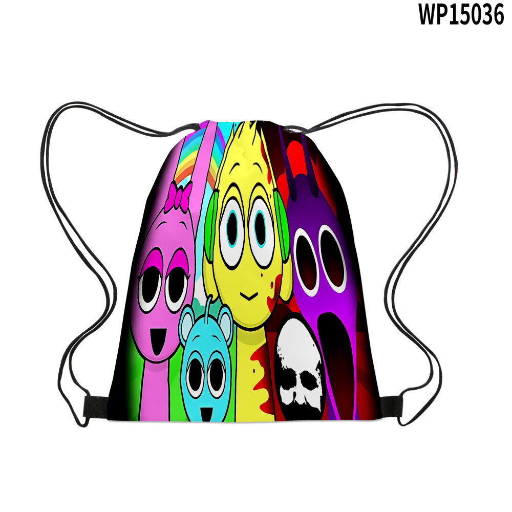 3D New Game Rhythm Box Sprunki Drawstring Bag Portable Large Capacity Drawstring School Bag Splash-proof