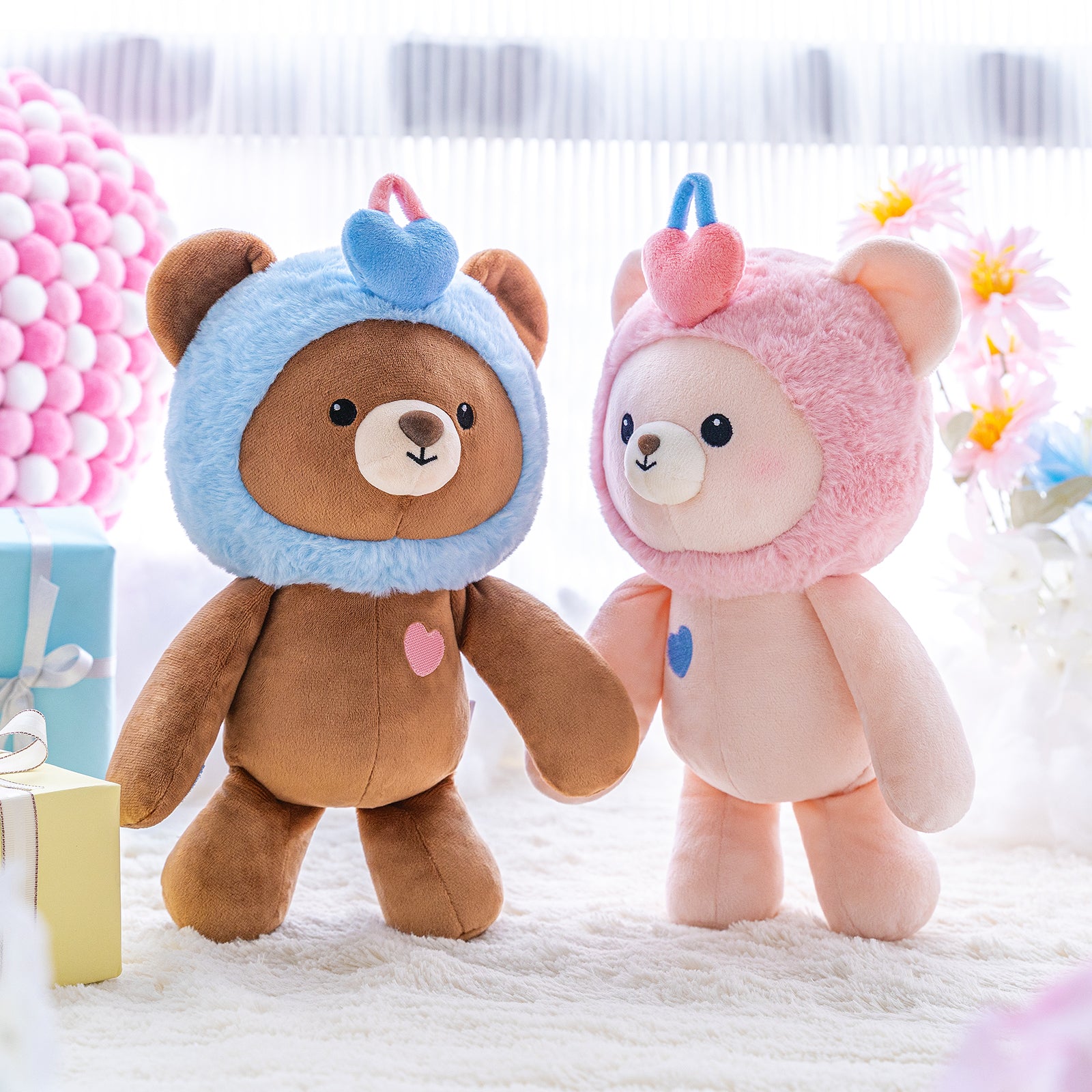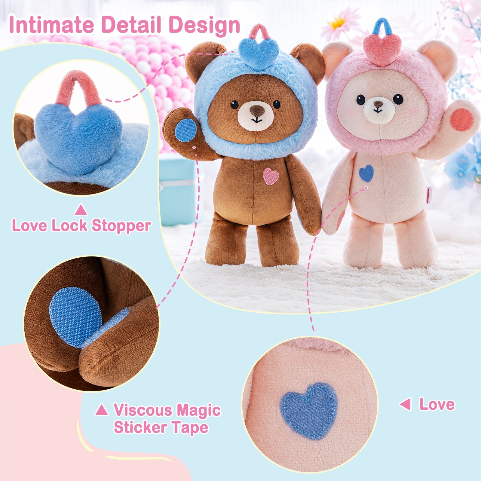 STICKY VELCORN PAPER: This plush toy is designed with sticky velcro paper on the body, the two toys can be hand in hand, back to back, etc., you can adjust them in many positions according to your own preferences