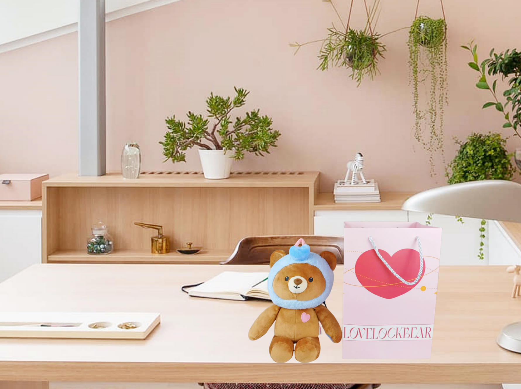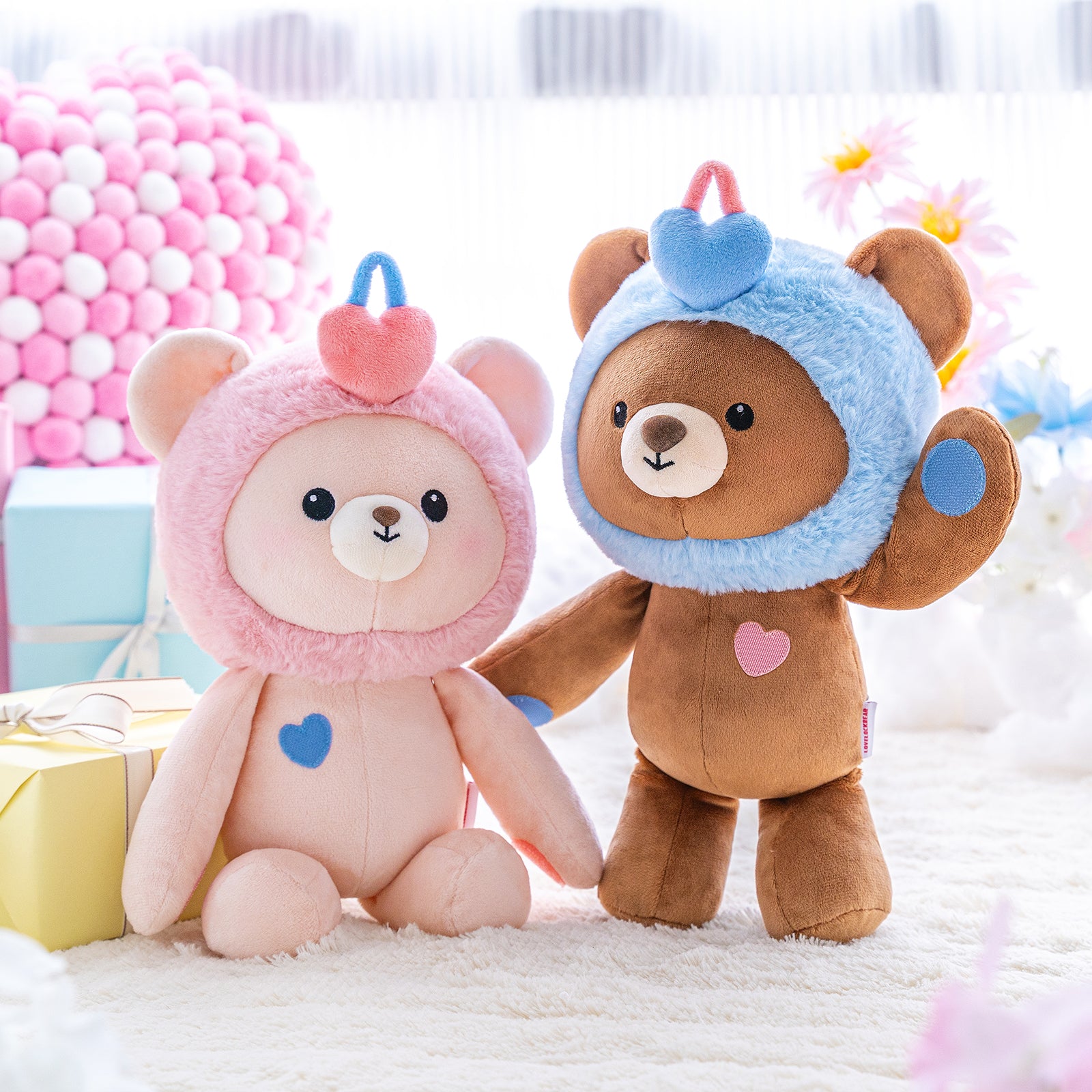 PORTABLE HEART SHAPED LOCKING CLASP: The bear toy height: 12.59 inches, weighs: 8.11 ounces; the head is designed with a heart shaped locking clip to show us love to pass on love; It is easy to hang on the bag with a clasp when traveling. It can be used as a gift, a child's schoolbag, a room or a car decoration.